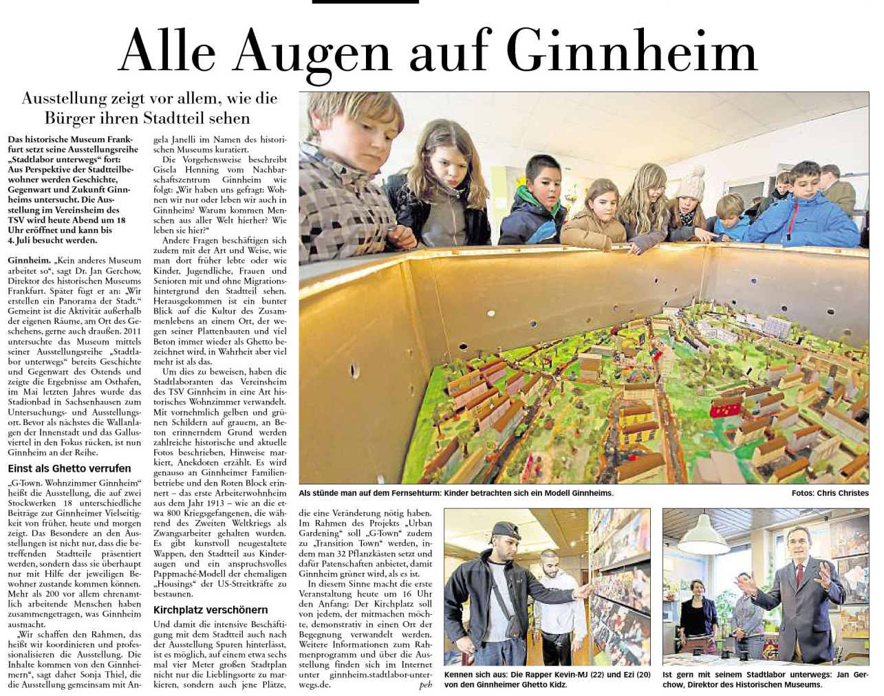 Gestern durfte ich die Ausstellung „G-Town. Wohnzimmer Ginnheim“, in Vertretung des Oberbürgermeisters, der leider absagen musste, eröffnen. Eine großartige Ausstellung, die im Rahmen der Reihe „Stadtlabor unterwegs“ des Historischen Museums Frankfurt konzipiert und mit ernorm viel ehrenamtlichen Engagement vor Ort erstellt wurde. Teil der Ausstellung ist ein schönes Urban Gardening-Projekt auf dem Ginnheimer Kirchplatz. Auch die Eröffnungsfeier war fantastisch und ich habe in der Eröffnungsrede das Geheimnis gelüftet, warum ich jahrelang dachte, dass ich eigentlich ein gebürtiger Ginnheimer wäre.
